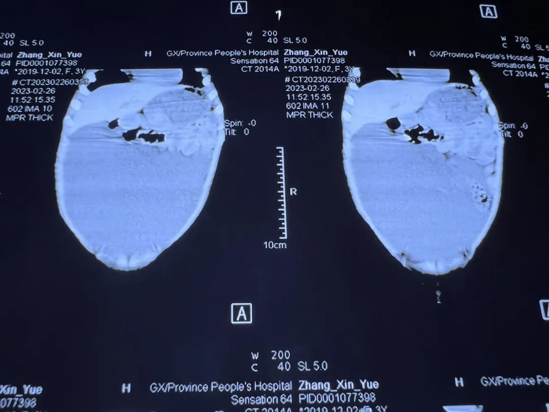 据患者家属介绍,受术3岁患儿自出生后就有腹部膨隆症状,因大便不畅,自患儿2月龄起开始在区内多家大医院求医,被拟诊断为巨结肠或其他结果。患儿4月龄时,经扩肛治疗,大便缓解,虽腹部仍在膨隆,但因患儿日常无感,因此并未采取其他措施。患儿长至3岁多,腹部一直比同龄小伙伴鼓,加之“巨结肠”拟诊焦虑,家长又开始了新一轮的求医路,但多家三甲医院诊断结果均不相同。