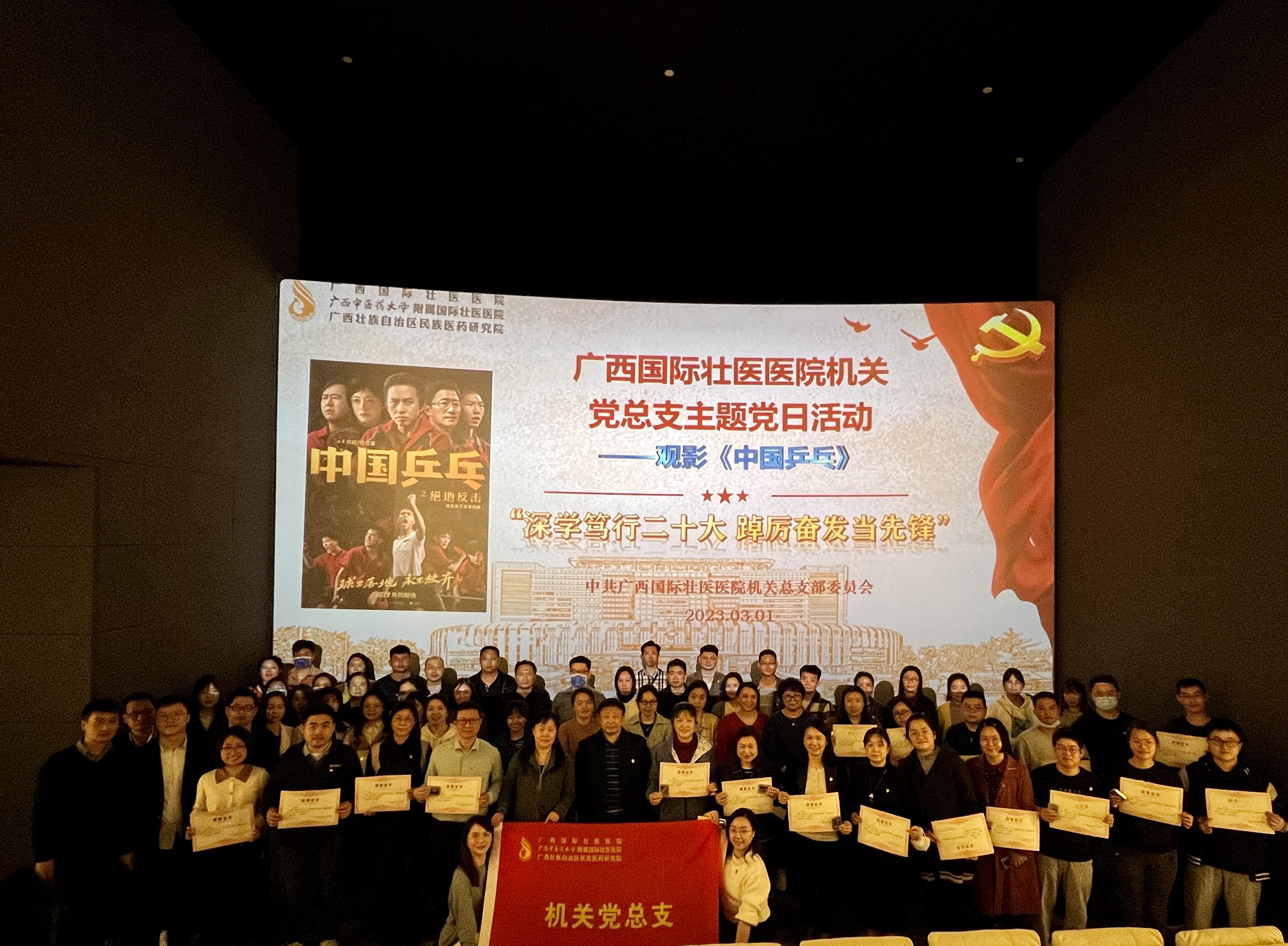 为深入学习贯彻党的二十大精神,弘扬主旋律,传播正能量,3月1日,医院机关党总支开展“深学笃行二十大 踔厉奋发当先锋”主题党日活动,组织党员集中观看电影《中国乒乓》并开展党的二十大知识竞赛。医院党委书记秦祖杰、纪委书记罗艺徽以普通党员身份参加活动。