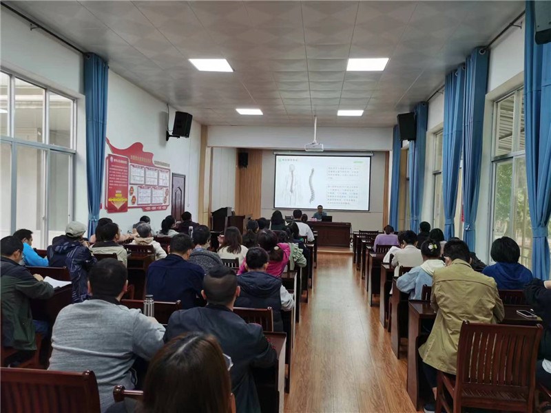 讲座现场,蒋中原医生讲述主题为“当代人群常见疼痛中医健康管理”的中医课堂,通过列举生动例子,讲述了包括脊柱相关知识、肩颈疼痛、四肢麻木等痛症的保健和预防,如何培养健康的生活习惯以及合理搭配膳食的知识等。在场听课的职工近100名,蒋医生的精彩讲述令现场职工拍手称赞;最后,讲座在李刚医生的“八段锦”动作要领示范中,和职工现场互动中结束。
