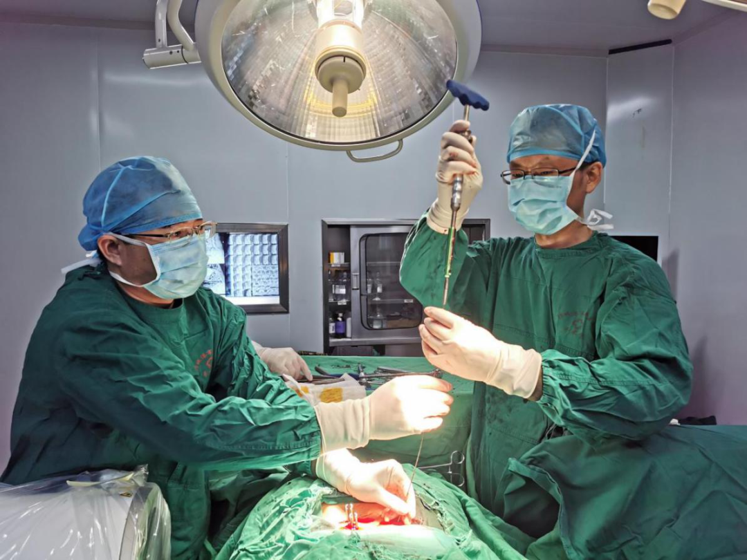 张文捷和防城港市中医医院覃正仕主任进行OLIF手术