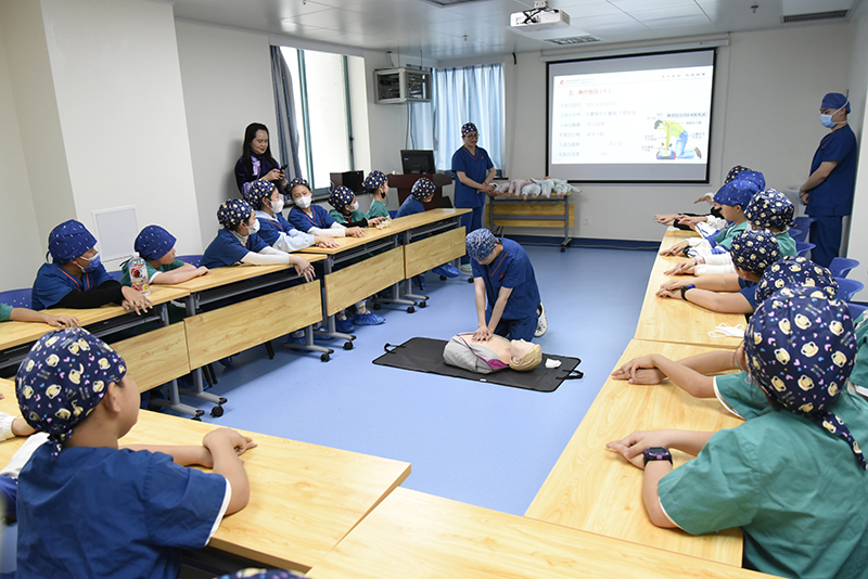 27日下午,手术麻醉科邀请到南宁市桂雅路小学五年级(17)班的同学们进入手术室,开展了以“探秘麻醉”为主题的首届开放日活动。活动中,医护人员在示教室以问题为导向,通过急救知识介绍、现场心肺复苏演示、海姆立克法、模拟人实操练习三步骤,让同学们了解并初步掌握了急救技能。随后,医护人员还带领孩子们走进麻醉工作现场,科普麻醉知识的同时介绍了相关仪器设备。通过活动,孩子们收获了丰富的知识和技能,也对医护工作者有了更深的了解,感受到了对生命的敬畏,内心中也播种下了医疗科学的种子,留下了难以忘怀的记忆。
