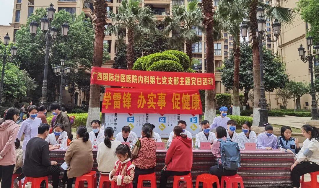【附属国际壮医医院】“弘扬雷锋精神,为群众办实事”——内科第四、第七党支部联合开展主题党日活动