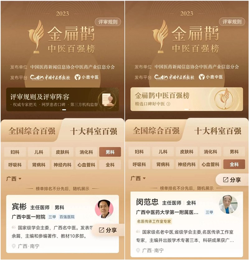 【喜讯】一附院闵范忠和宾彬教授荣登2023“金扁鹊”全国中医百强榜!