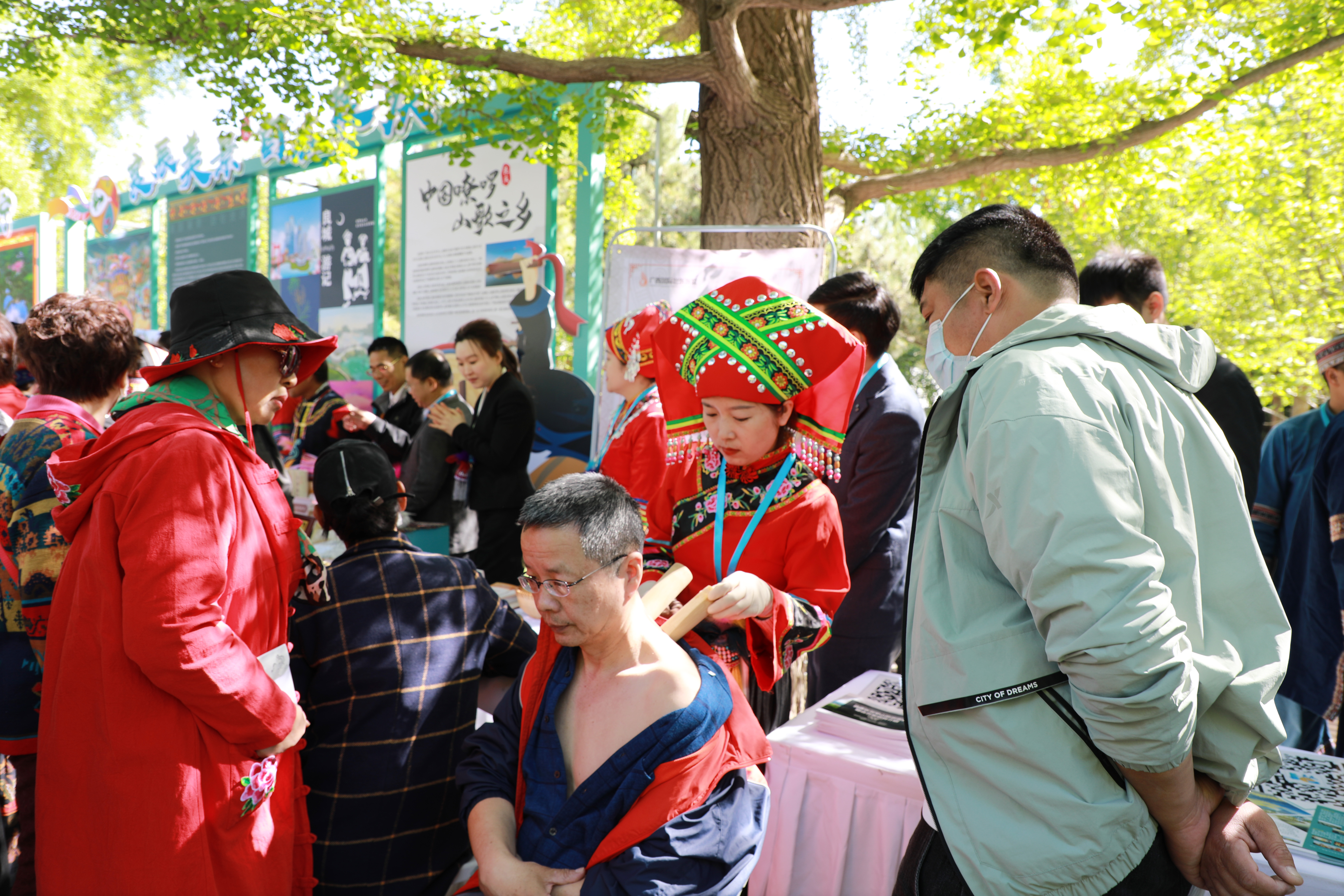 4月16日,“潮玩三月三 相约游广西”(北京)宣传推广活动暨广西非遗精品艺术展演在北京市地坛公园举办。附属国际壮医医院受邀参加,现场展示自治区非物质文化遗产项目壮医药物竹罐疗法和医院研发的壮医药大健康产品,广受北京市民朋友的喜爱。