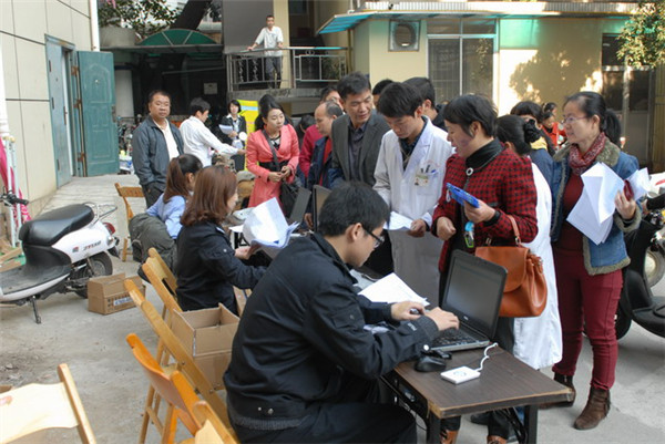 业务办理当天,车管所工作人员早早来到一附院,后勤部派出的10名工作人员积极配合,将办理业务用的地磅、电脑、制证仪器等设备调试好。9时整,已排好队的职工在工作人员的指引下,领取业务表格填写资料,查验车辆信息,录入车辆信息,领取电动车号牌和拍摄照片,一切都进行的有条不紊。两天时间里,共为578辆电动车办理牌照。