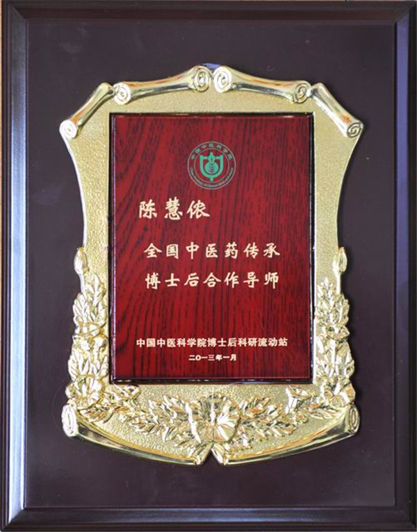 为发挥国家博士后制度在高层次中医药传承工作中的作用,提高中医药传承发展工作质量与水平,由国家中医药管理局主办、中国中医科学院承办的全国第一批中医药传承博士后进站启动会于2013年12月26日在北京隆重召开,会上,一附院陈慧侬教授获选为国家中医药管理局确定第一批中医药传承博士后合作导师,李卫红博士获选为陈慧侬教授的传承博士后。
