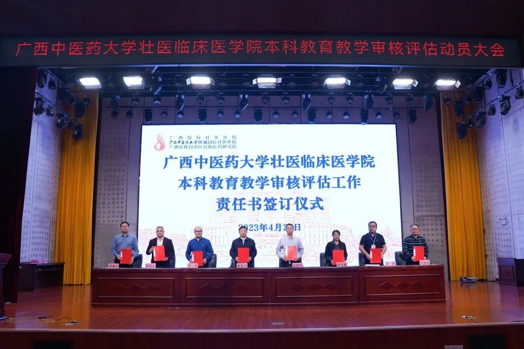 会上,秦祖杰、岳桂华代表壮医临床医学院与医院领导班子成员、各科室负责人签订审核评估工作责任书,进一步明确工作任务,压实工作责任。