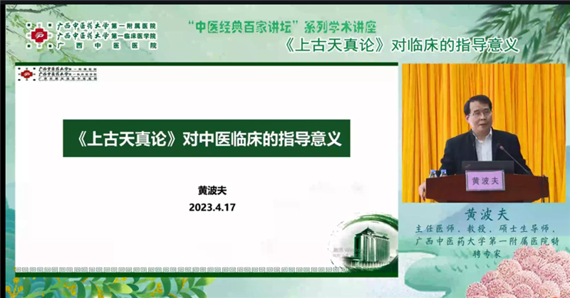 本期讲座的专题是《〈上古天真论〉对临床的指导意义》。黄波夫教授长期从事《黄帝内经》研究,将经典中医名著《黄帝内经》的核心理论进行了深入解读和讲解,结合临床实例讲解了经典文献的原理与应用,旨在通过挖掘与传承中医经典文献《内经》中的经典理论,将优秀的中医经验应用到临证中去。强调在中医治疗实践中,应该注重学习和运用中医经典理论,优化诊疗方案,提高治疗疗效。