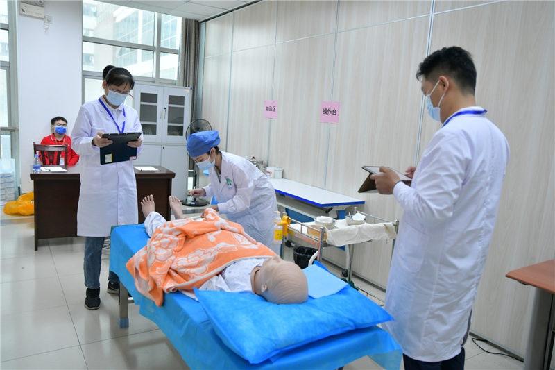 一附院院长谢胜出席参加了赛事活动、一附院副院长钟远鸣主持了比赛的开幕式和闭幕式。本次比赛分为理论知识考试和实践操作两个环节。理论知识考试主要考察选手对中医学基础理论知识的掌握程度,采用机考无纸化考试。实践操作环节则要求选手在规定时间内完成一系列中医诊疗操作,包括中医诊断技能、中药与方剂知识与运用、中医内科技能、中医外科技能、针灸推拿技能、急救技能等。