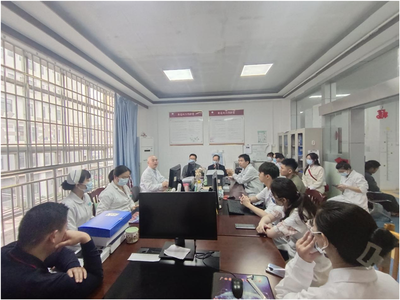 27日下午,王开龙主任医师、崔俊武副主任医师进入康复医医学科病区进行教学查房,与相关科室医护人员共同探讨疑难病例的中西医协同诊疗方案。王开龙主任医师现场对一例疑难腰痛患者进行了内热针治疗操作演示。