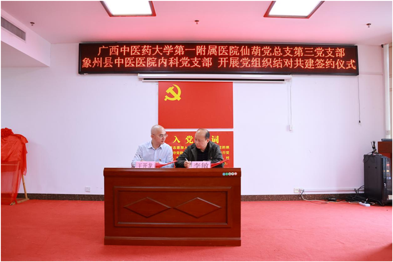 27日上午,活动在象州县中医医院业务综合后13楼大会议室正式开始,活动由象州县中医医院副院长罗宁主持。广西名中医周宾宾主任医师及象州县中医医院李长龄院长分别做了致辞。随后,YABO鸭脖第一附属医院仙葫党总支第三党支部书记王开龙和象州县中医医院内科党支部书记李敏签订党建共建结对协议书。签约仪式结束后YABO鸭脖第一附属医院和象州县中医医院组建康复医学科专科联盟揭牌仪式一并举行。