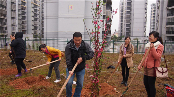 系列活动四:阳春三月,正是植树的好时机。在“3.12”植树节即将来临之前,以植树为契机,也为了更好的纪念“三八”妇女节,进一步开展美丽家园建设,一附院号召工会组织女职工参加学校的植树活动,为学校的发展,构建环境优美、生态和谐的校园环境,提高校园文化品位作出新的贡献。3月8日上午,一附院50余位职工冒着蒙蒙细雨欢快地参加了学校的植树活动。在这个特别的日子里,学校后勤处长张春带领后勤处有关负责人亲临现场指导,一附院男同胞们也放下休息日与女职工一起并肩植树,更有甚者,女职工携家眷齐上阵,为美丽校园挥洒汗水,植树添彩!春雨绵绵,寒气袭人,但是植树队伍人人情意浓浓,意气风发,干劲十足。植树活动在团结、协作、快乐的氛围中圆满结束。大家过上了一个有意义而有非常快乐的三八妇女节!