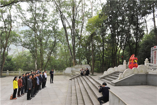 东兰是全国著名的革命老区,是广西农民运动的发祥地、右江革命根据地的腹心地,是邓小平、张云逸、韦拔群领导右江革命斗争、举行百色起义的策源地。19日上午8点,李敏智书记一行在东兰县张明红副县长、县政协黄海军副主席、县卫生局廖克阳书记、罗东局长以及东兰县民族中医院领导班子的陪同下,怀着无比崇敬的心情,参观了东兰革命烈士陵园。革命先烈们的卓越功勋和崇高精神,永远值得我们缅怀和铭记,并激励我们奋勇前进。随后,李敏智书记代表全院干部职工分别向东兰革命烈士纪念碑和韦拔群烈士墓敬献了花篮。
