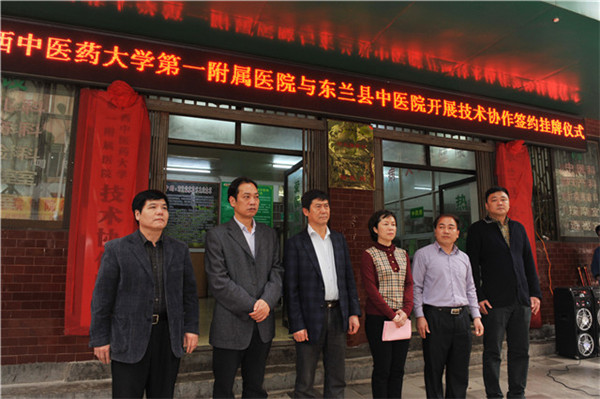 与东兰县民族中医院结成技术协作医院签约和揭牌仪式现场
