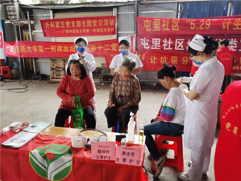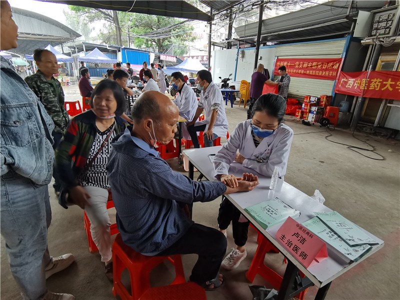 为深入贯彻落实党的二十大精神,扎实开展“我为群众办实事”实践活动,切实增强人民群众健康保健意识,进一步助力乡村振兴工作,5月24日,一附院受青秀区街道办的邀请,走进城中村、屯里社区便民菜市开展惠民义诊活动。