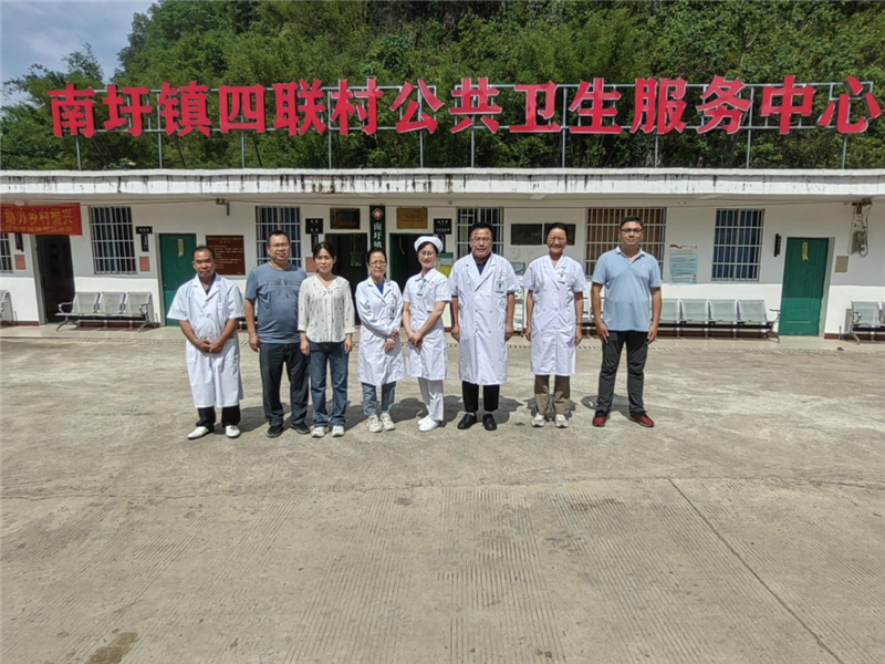 一附院第一百零三批“轮值村医”专家与四联村驻村“第一书记”周雨晴及驻村队员、当地村医合影