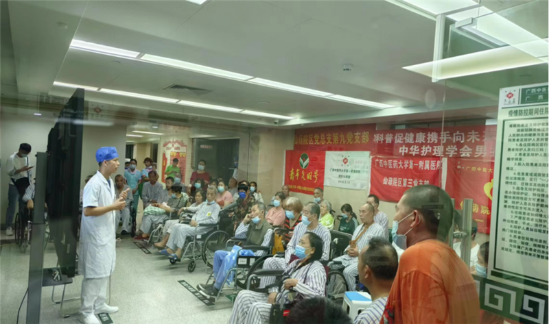 5月26日,号手韦铖于康复一区做“老年人新冠感染后的个人康复护理”知识科普。