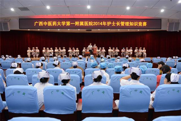 为强化一附院护士长护理行政及业务管理能力,活跃管理思维,丰富管理内涵,共建优质护理团队,护理部于2014年4月18日下午在一附院五楼多功能学术厅成功举办2014年护士长管理知识竞赛活动。一附院副院长桂雄斌代表医院党政领导出席竞赛活动并担任总评判长,韦衡秋主任护师、王粤湘主任护师、彭锦绣副主任护师担任评委,姜红副主任护师担任比赛总监督,保证了竞赛的公平公正。
