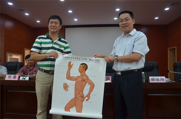 上午,刘泰教授和纪云西博士后马不停蹄继续前往另外一家技术协作医院——宜州市人民医院,对该院的医务人员进行相同主题的专题报告,周建国副院长在讲座上,代表医院也向宜州市人民医院捐赠了壮医针灸图本及壮医针灸穴位图。