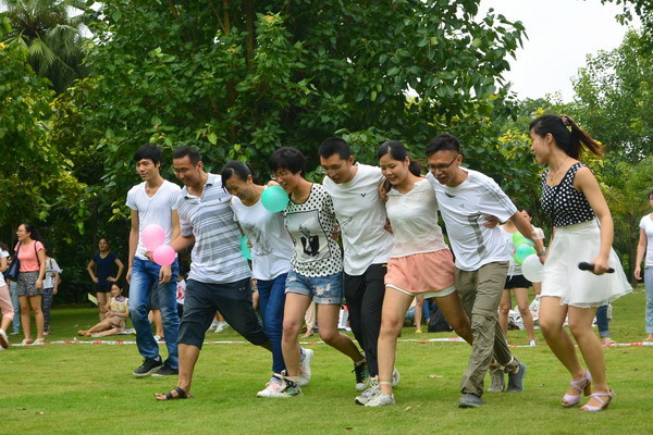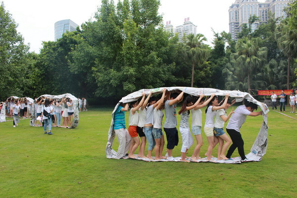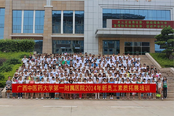 2014年7月26日,一附院团委组织2014年260名新员工在南湖公园名树博览园广场开展户外拓展培训活动。