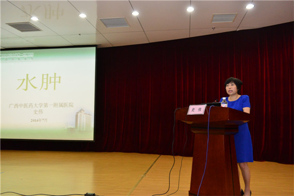 2014年8月7-8日,由自治区中医药管理局主办、一附院承办的“2014年第二期全区中医药标准化培训班”在一附院举办。自治区中医药管理局中医民族医医疗处处长黎甲文,一附院院长黄贵华,党委书记李敏智,党委副书记、副院长吴西西,副院长桂雄斌、谢胜、周建国,中国中医科学院中医临床基础医学研究所谢雁鸣教授等出席开幕式,来自全区80家中医、中西医结合、民族医医院的业务副院长、内科、肿瘤科、妇科主任及技术骨干共430余人参加了培训。本次培训会由桂雄斌副院长主持。