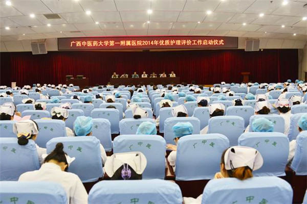 为贯彻、落实国家卫生计生委、自治区卫生计生委“关于开展优质护理服务评价工作的通知”要求,2014年8月19日下午,一附院在多功能学术大厅举行优质护理服务评价工作启动仪式,一附院院长黄贵华、一附院党委书记李敏智、党委副书记、纪委书记、副院长吴西西、副院长卢健棋、桂雄斌、周建国、钟远鸣等院领导出席启动仪式,全院中层干部及护理人员500余人参加启动仪式。