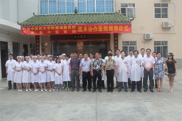 2014年8月25日下午,瑞康医院黄国东副院长带领医疗服务部、骨科、消化内科、呼吸内科、心血管内科、妇科以及儿科组成的专家博士团来到崇左市天等县进行“技术协作医院揭牌”及义诊活动。