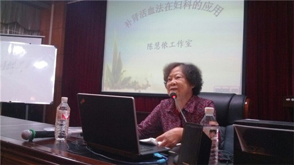 下午,在与会人员全体起立报以热烈的掌声中,全国名老中医、妇科专家陈慧侬教授登台授课。这一激荡人心的环节,充分体现了年轻一辈中医工作者对老一辈中医专家的无比尊敬之情。陈教授把自己集五十年临床经验大成之“补肾活血法在妇科的应用”成果,在授课中一一道来。