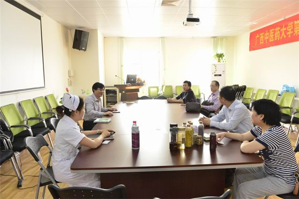 蔡永文局长一行参观了院史馆、中医文化长廊、门诊大堂、中药房、壮医科及中医“治未病”中心。黄贵华院长介绍了广中医的发展历史和医疗业务发展、中医文化建设情况;在中医“治未病”中心会议室,谢胜副院长介绍了“治未病”中心的整体情况,以及中医“治未病”理念在专科建设中的应用和向社会的有效传播,在传统中医疗法和音乐治疗、心理疏导相结合的技术特色等方面所做的创新性实践与探索。蔡永文局长一行对广中医悠久的历史、浓厚的中医药文化氛围、现代化的医院布局、显著的中医和中西医结合特色和优势、先进的医院管理理念表示由衷的赞叹。李绪香院长表示,广中医的成功经验值得宜都市中医院学习,特别是在中医“治未病”的理念、技术等方面,宜都市中医院将派出专业技术人员到一附院进修学习,将特色的医疗技术带回去,为宜都市的人民群众提供更为有效的中医药技术服务。