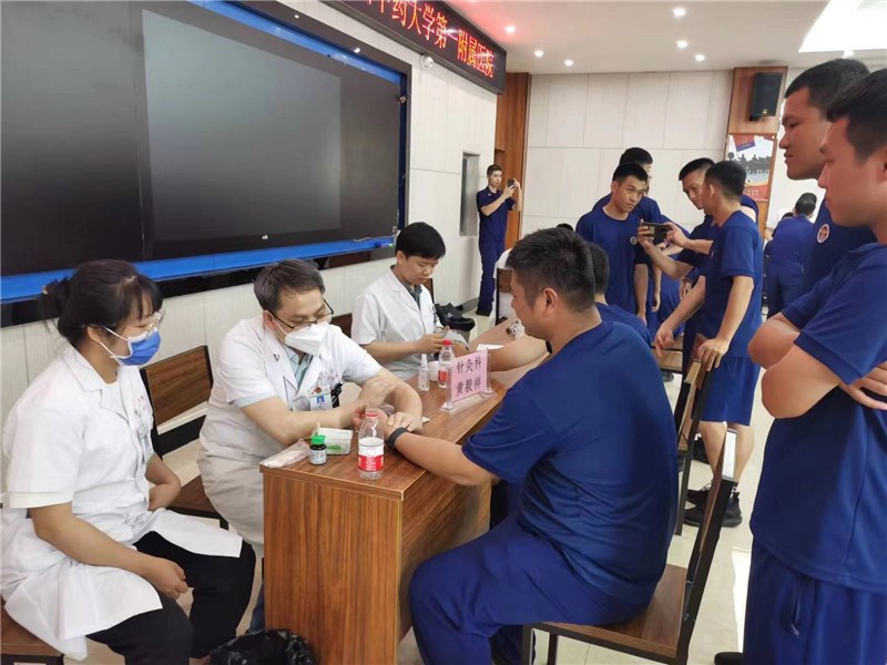 为进一步关爱消防员身心健康,为消防员送健康, 6月2日,一附院针灸科黄毅祥,心内二温志浩,康复医学科韦业,健康管理中心卢文生,胃肠肛门外科周丽、赵淋琪等共8位医护专家走进南宁市消防训练基地开展中医药健康服务活动。