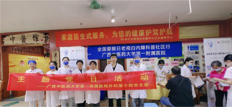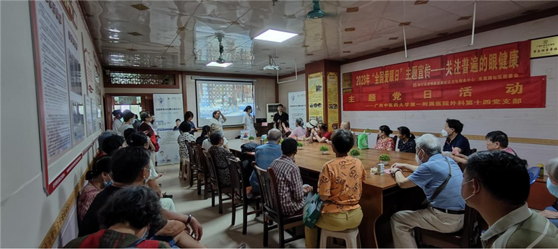 2023年6月6日,是第28个全国爱眼日,为深入贯彻党的二十大精神,为民办实事。6月3日上午,一附院外科第十四党支部联合南宁市东葛社区卫生服务中心开展“爱眼日”健康科普讲座及义诊活动暨支部主题党日活动。