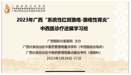 5月26至27日,广西国际壮医医院“系统性红斑狼疮—狼疮性肾炎”中西医诊疗进展学习班线上举办。副院长黄国东、李继清出席。逾6000人次线上参会学习,在线播放超3万例次。