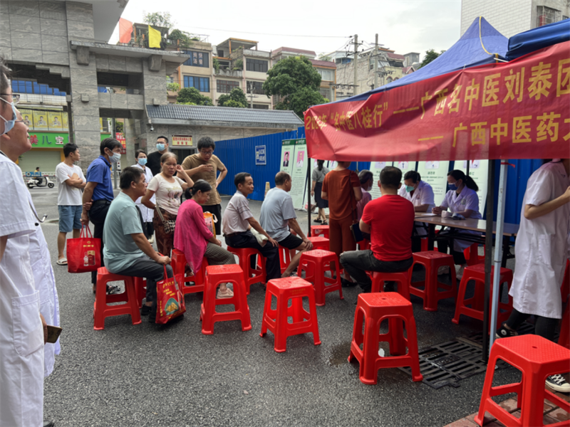 6月8日上午,在北流市中医院义诊活动现场,名医汇聚,刘泰名老中医工作室团队及一附院其他优秀科室专家共同为北流市人民义诊。慕名而来的群众早早排队等候,现场门庭若市,座无虚席。义诊中,对每个求诊群众进行望、闻、问、切,收集病史,分析病情,为群众提供专业的疾病诊断和科学的诊疗方案,同时对常见病,多发病的预防诊治及预后等疑难问题给予全面解答。大家敬业、专业、细致而周到的服务,得到当地群众的高度赞扬。