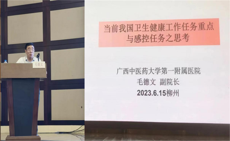 培训班共设23个专题,邀请到了中华预防医学会医院感染控制分会吴安华主任委员、中国医院协会医院感染管理专业委员会李六亿主任委员,中国老年医学会感染管理质量控制分会刘运喜主任委员,中南大学湘雅医院黄勋主任等区内外院感专家授课。一附院毛德文副院长给培训班带来“当前我国卫生健康工作任务重点与感控任务之思考”的主题分享,结合国家新发展阶段的建设目标,从医院高质量发展的角度提出当前感控任务着力点需“回常态、防应急、强分析、提素质、重培训、多宣传”,并运用新发展理念创新感控工作,推动感控更高质量发展。