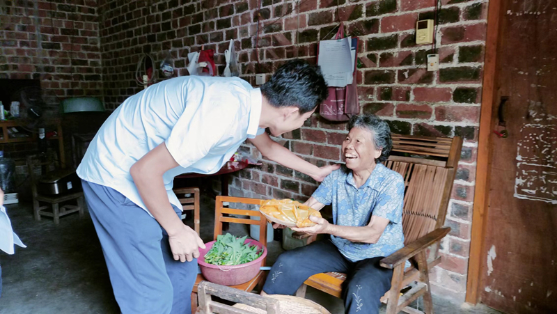 当天下午,驻村第一书记、工作队员和村委会将煮好的粽子,分别送到村里80岁以上老人、低保户等的家中,将节日的问候传递到他们的手中,让他们感受到党和政府的温暖。“你们都那么忙还想到为我们送来包好的粽子,你们工作真细致,太感谢啦。”村民赵阿姨高兴地对谢观增说。