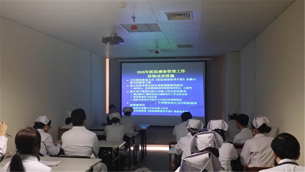 1月19日上午,骨一科有序的组织科室全体医务人员参加培训,分管骨一科的医院感染管理科赵莹副主任详细剖析了骨一科2014年医院感染管理工作开展情况,骨一科在近年取得的工作成绩显著,尤其在外科无菌技术操作与管理方面得到历届科室负责人的高度重视与强化,在培训会场上,作为骨科学术带头人的钟远鸣副院长也在其中认真倾听培训内容。下午,妇科示教室里感控培训也开始了,分管妇科的医院感染管理科关永冠老师对妇科在过去一年里的工作表现进行了全面的点评,科主任、护士长能针对存在问题提出具体的改进措施。1月20日上午,肺病科和心血管科一病区的感控培训课程同时开课,分别由分管肺病科的医院感染管理科关永冠老师和分管心血管科一病区的医院感染管理科陆青老师主讲。肺病科的专科特点之一是来自社区的感染病人、多重耐药菌感染病人和季节性呼吸道传染病人高度集中和容易导致病原体传播的科室,但多年来,肺病科在病人隔离和手卫生等方面都落实较好,无发生医院感染聚集和医院感染暴发案例,这归功于科室对感控制度的重视,以及全体医务人员的密切配合。心血管科一病区能结合开展心脏介入手术这一专科特点开展管理,对心脏介入手术中心血管造影术能严格按照国家卫计委围术期抗菌药物管理要求做到零用药。