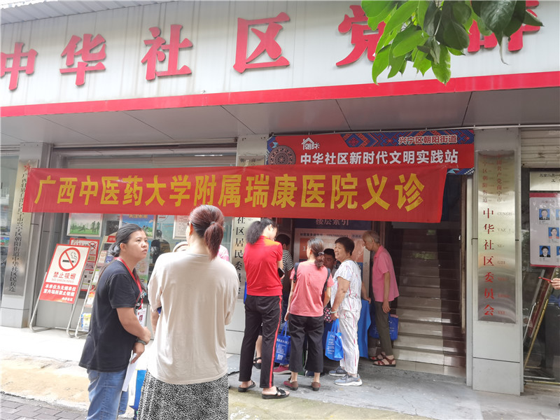 为树立正确健康观,维护社区居民的身心健康,8月10日下午,附属瑞康医院医疗服务部组织治未病中心专家赴南宁市兴宁区中华社区开展健康知识讲座及义诊。