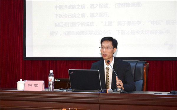 在刘力红教授两个多小时的精彩讲授结束后,元之源钟艺主治医师作了《医养结合模式的实践与探索》专题交流。钟医师利用自己从事医疗保健行业10余年的实践和思考,指出了治疗和养生的结合,既是促进个人健康的方式,也是促进中医机构增效发展的模式。从历代中医医家的案例,从中医四大经典的阐说,从市场需求发展的规律剖析,无不说明了治疗和养生必须有机结合,构成完整的中医养疗体系。“三分治,七分养”,中医的特色往往是养中有治,治中有养。钟医师在交流过程中,列举了多个实践案例,介绍了中医机构开展医养结合的一些经验做法。