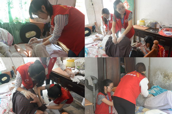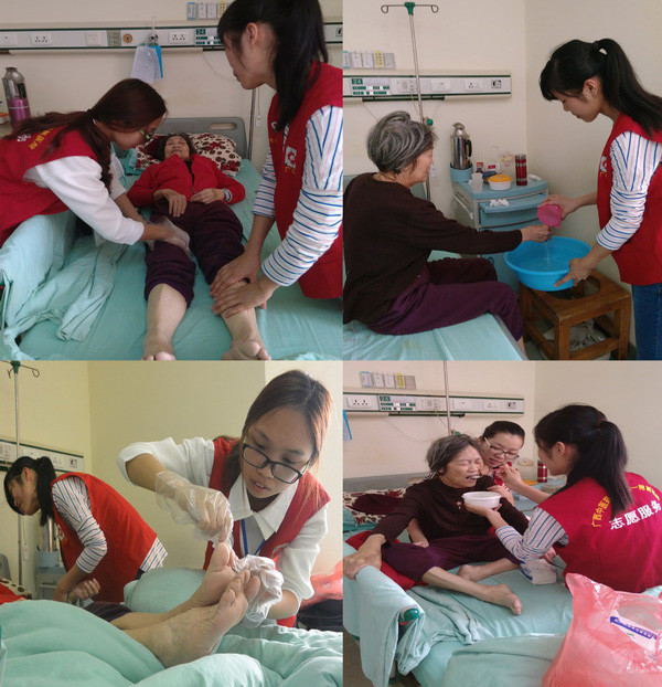 志愿者为空巢老人提供护理服务