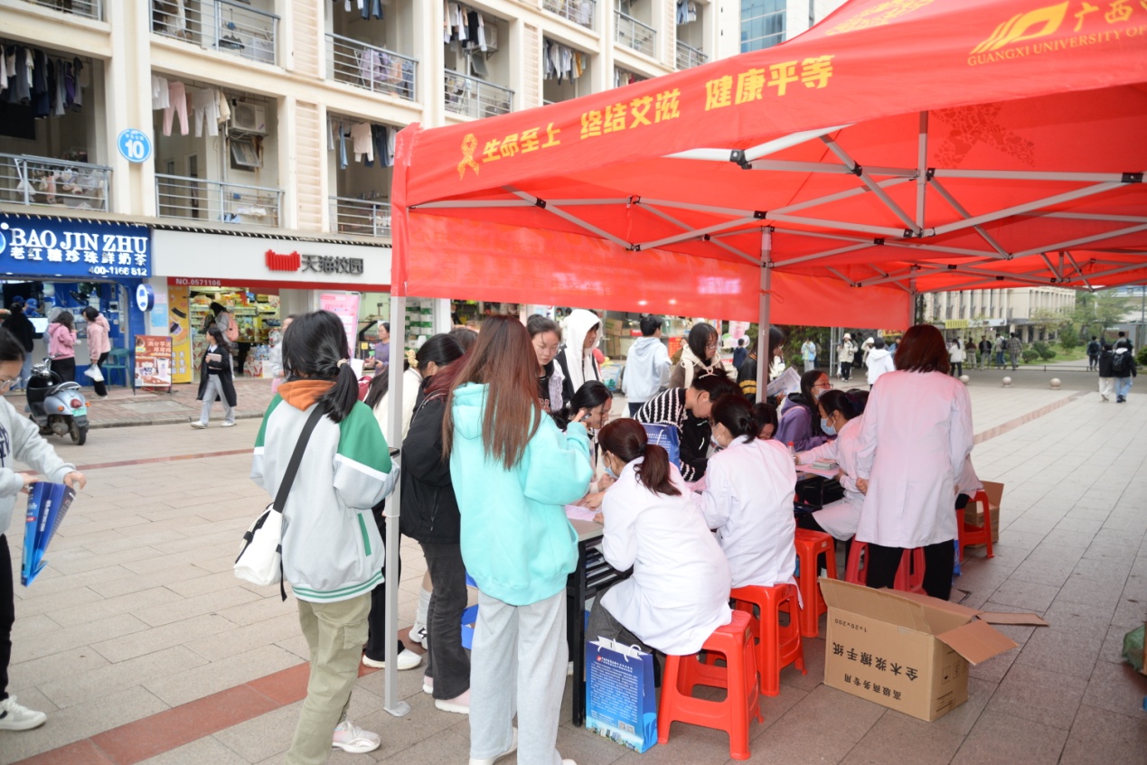 12月1日下午,艾滋病研究中心办公室在学校仙葫校区开展预防艾滋病知识宣传活动,工作人员为前来咨询的大学生讲解艾滋病传播途径和条件,艾滋病诊治新进展,高危暴露前后的评估与处理及预防用药等知识,发放了防艾知识宣传册及安全套500余份,参加活动学生500余人次,艾滋病预防知识知晓率达100%。