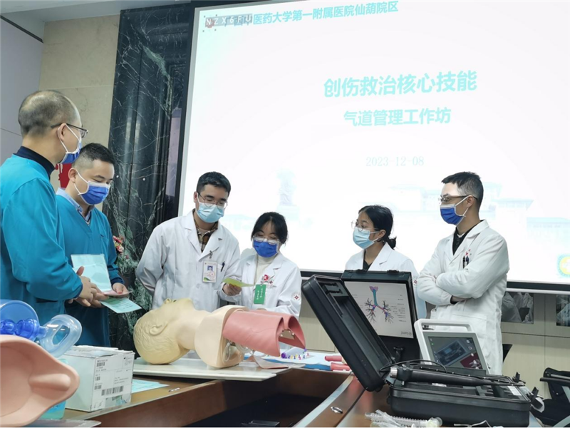 为提高住培学员对急危重症患者气道管理水平,实现规范化标准化的气道操作。12月4日,一附院仙葫急诊科创伤团队导师对住培学员开展了院前院内急危重症患者人工气道管理工作坊。本次工作坊,采取理论、技能授课结合情景案例的教学的方式,旨在提升学员的急诊急救理论和技能水平,为住培学员独立承担院前院内急救工作打好坚实基础。