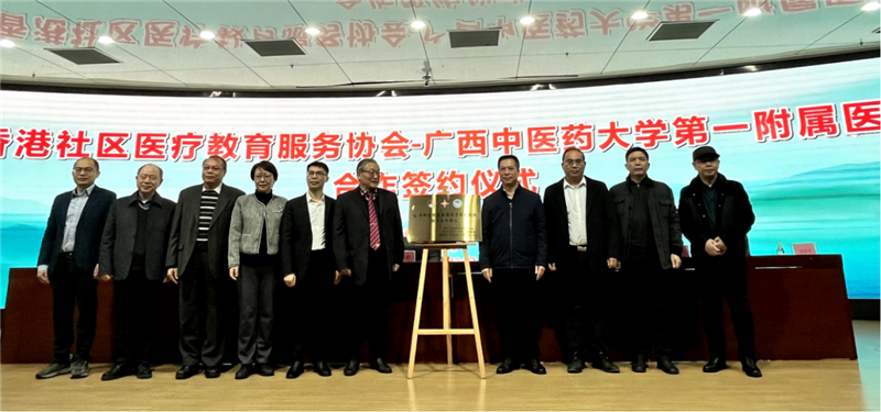 香港社区医疗教育服务协会会长张汉明、主席郭彦丽代表香港社区医疗教育服务协会,一附院副院长黄仲海代表一附院,双方进行了互赠纪念品,就桂--港两地的社区医疗教育服务签订合作协议,并进行了“桂-港两地社区基层医疗教育服务技术合作单位”的揭牌仪式,以此建立紧密合作的关系。