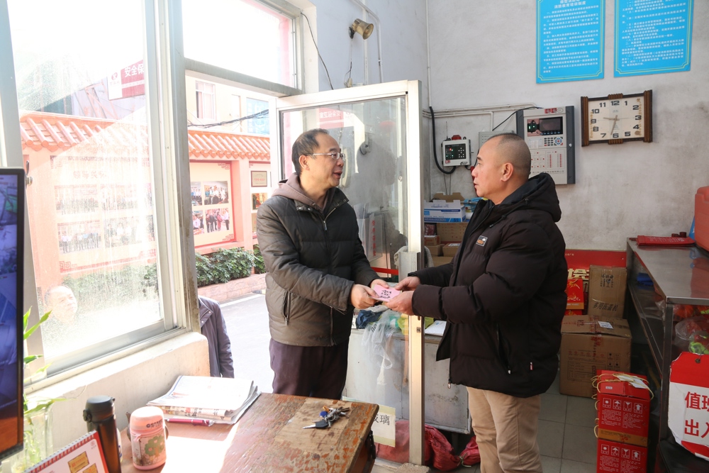 公司领导实地检查了春节期间厂区安全工作,看望慰问执勤值守的职工,每到一处,公司领导都与一线职工亲切握手、攀谈,代表公司对他们的辛勤工作表示感谢,对奋战在一线的干部职工致以诚挚问候和新春祝福,公司领导对一线职工的关怀,使在场的每一位同志都倍感温暖。