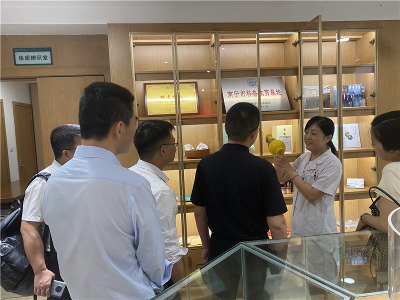 汤如龙一行此次目的为借鉴一附院在中医治未病学科建设、康复医院规划建设、院区学科建设与管理等方面的做法和经验。谢胜对此表示热烈欢迎,来访嘉宾们通过参观了一附院的院史馆、中医治未病中心,了解一附院建院发展历程、中医药特色优势发挥、中医药文化建设的特点及桂派医学、民族医学的发展概况,体会了一附院中医特色鲜明的中医外治、康复、治未病的理念与特色。