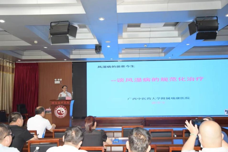 4月26日下午进行的学术讲座中,广西名中医庞学丰教授、庞健丽主任医师、李玉玲副主任医师分别以《风湿病的规范化治疗》《消渴痹证(糖尿病周围神经病变)中医诊疗方案》及《外治法在风湿病中的应用》为题进行了授课。他们倾囊相授自己多年的临床经验和诊疗思路,学员们学习态度积极,为基层医务人员打开临床诊疗思路,传播治疗新理念。