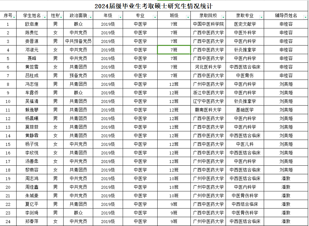 2024届毕业生考取硕士研究生名单(部分)