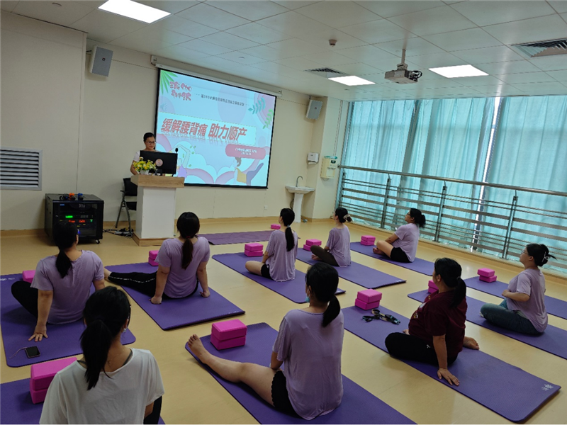 上午,科室副主任陈璇,党支部书记、护士长黄慧红带领大家在病区对宝妈宝爸们进行全国母乳喂养宣传日的宣教,倡导暖链行动。在孕妇学校的活动中,谭金娥副主任护师进行了母乳喂养知识讲座《正确开奶,科学哺乳》,从母乳喂养的理论到技巧向大家讲解如何掌握开奶诀窍及正确的哺乳姿势等,准爸妈们收获多多,纷纷拿出手机拍课件,做笔记,大家参与气氛热烈,学习兴致浓厚。知识讲座结束后还进行了以“缓解腰背痛,助力顺产”为主题的孕妇瑜伽活动,在专业瑜伽老师李莉的指导下,准妈妈们掌握了缓解孕期腰背痛方法,体验不一样的快乐“孕”动,为分娩赋能。