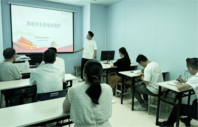交流会上,林柳云说明了本次活动的背景和意义,并介绍本次活动的内容,随后由机关第五党支部赵际针对工作和生活中频发的用电安全及电击事件和防护措施分享了《用电安全及电击防护》,最后与会人员就检验科在信息、设备、资产、招标方面的问题进行了充分讨论。