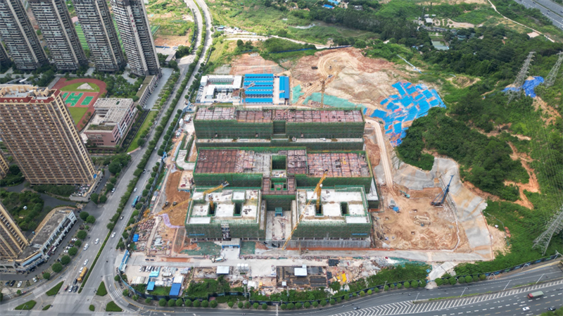据悉,截至2024年8月9日,我院凤岭南医院项目建设形象进度为:一、门诊楼主体结构全面封顶,砌体工程插入施工完成10%;二、医技楼主体施工至5层结构,预计8月30日全面封顶;三、住院楼主体施工至10层结构;四、后勤楼桩基础施工完成97%。项目目标在2024年12月中旬完成主体全面封顶。