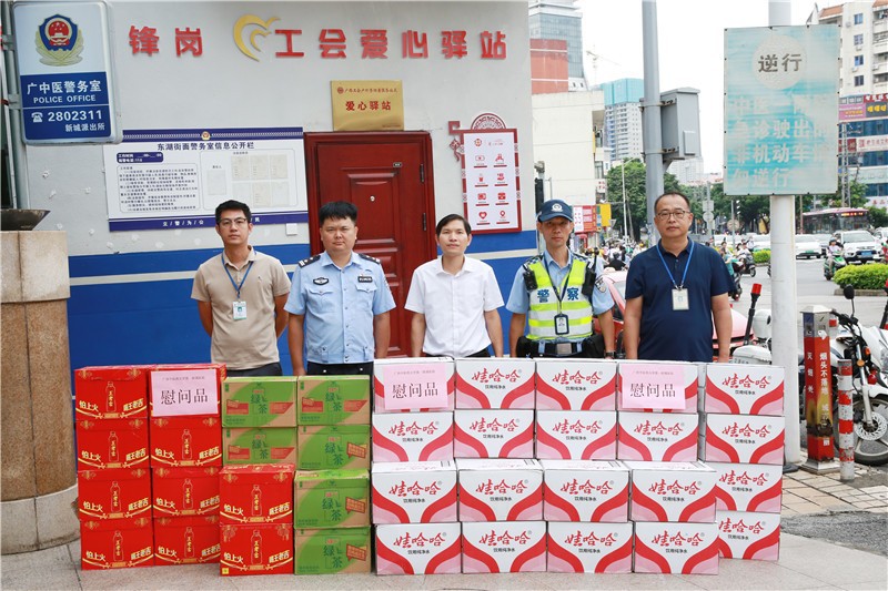 8月16日上午,一附院副院长陈广辉率领后勤部一行,到南宁市公安局交警支队二大队交警岗亭和新城派出所、仙葫派出所,代表医院向一线民警进行慰问。